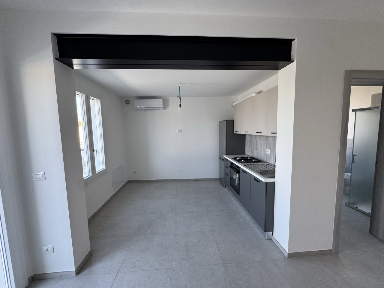 Elegante appartamento all'interno di un contesto residenziale di nuova ristrutturazione, realizzato con le più avanzate tecnologie per il comfort e il risparmio energetico. Con riscaldamento a pavimento, caldaia a condensazione, cappotto isolante, ventilazione meccanica e climatizzatore con pompa di calore, questa soluzione abitativa è il TOP di gamma per chi cerca una soluzione moderna e al passo con i tempi. Questo luminoso immobile al piano primo è caratterizzato da un ingresso che ci conduce a una spaziosa zona giorno open-space con cucina arredata, una camera da letto, bagno. Completa l'abitazione un ampio terrazzo, cantina e un posto auto.