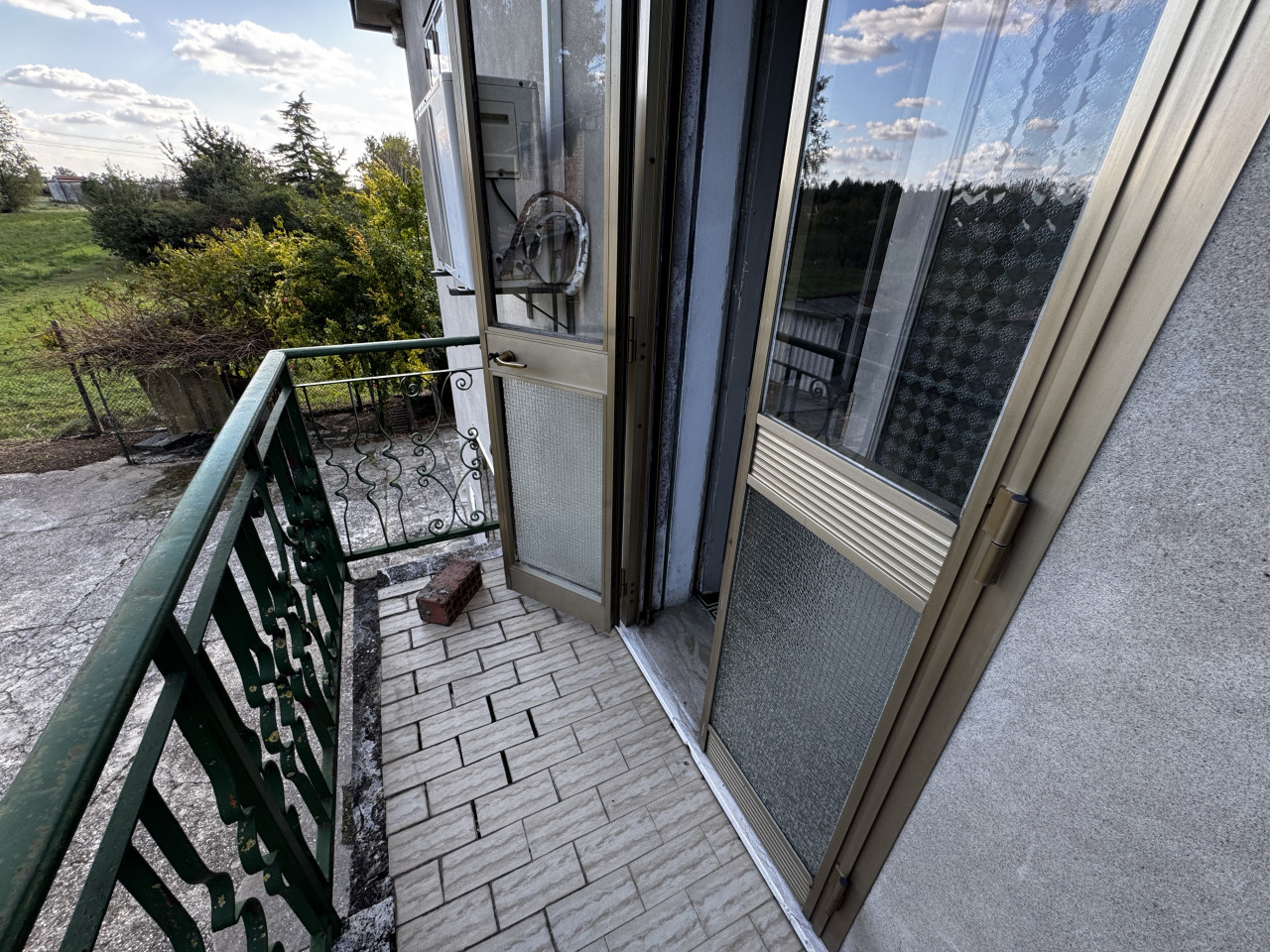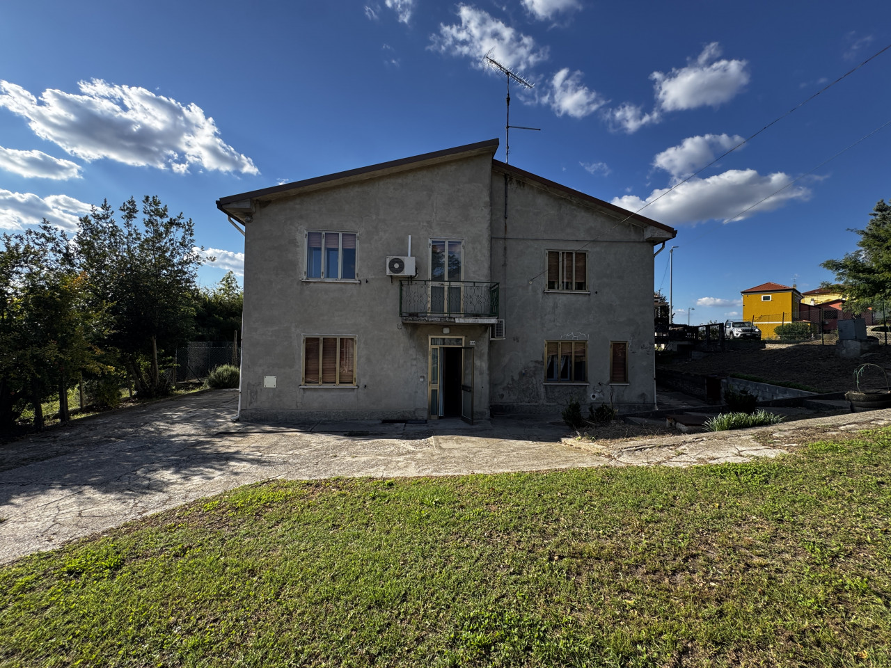 Casa accostata, sviluppata su due livelli, completata da ampio giardino e da fienile.